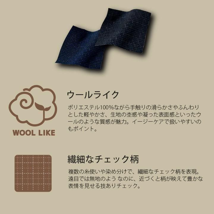 素材、デザイン、機能すべてがオフィスからフォーマルなシーンまで対応できるクオリティーのスーツ。しかも、サステナブルな綿にも配慮した『エコトラッドチェック』