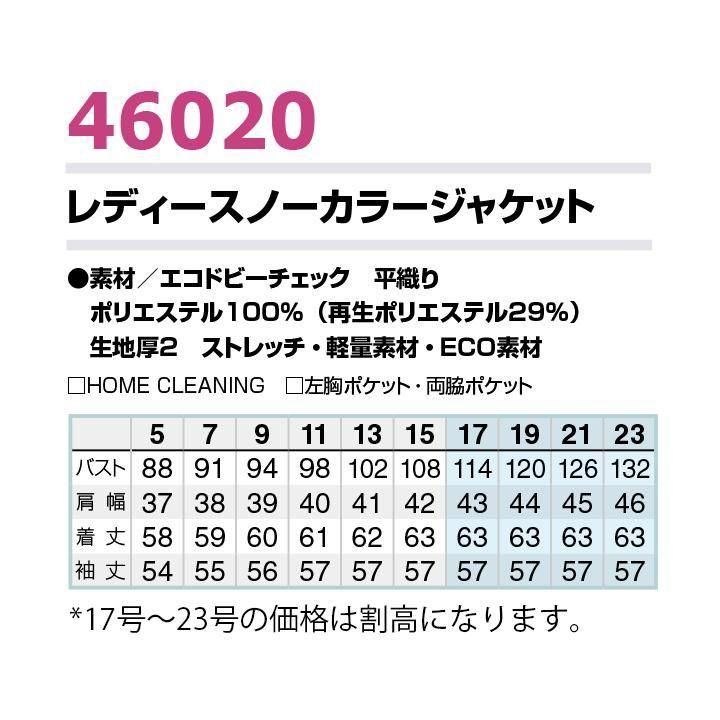 【AITOZ】46020レディースノーカラージャケット【トレッチ】【軽量】【Pieds】【エコ商品】
