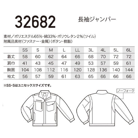 【クロダルマ】32682 長袖ジャンパー(ユニセックス) 【帯電防止JIS T8118】【ストレッチ】【リーズナブル】【男女兼用】
