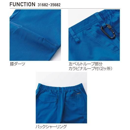 ボトムスのウエストには締め付け感のないバックシャーリングを採用。帯電防止機能も備え、さまざまな業種に対応できる男女兼用ユニセックスユニフォーム。