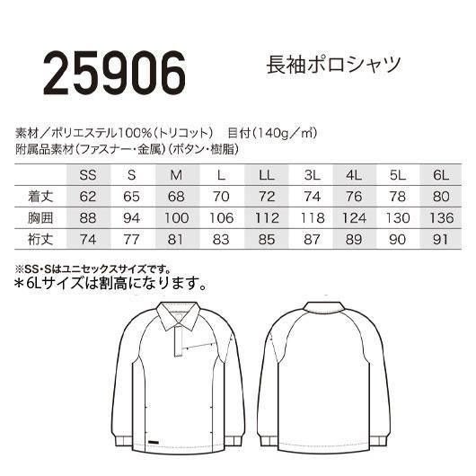 【クロダルマ】25906 長袖ポロシャツ(ユニセックス)【3シーズン対応】【スリムシルエット】【縦横ストレッチ】【消臭テープ】【男女兼用】