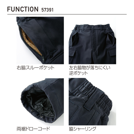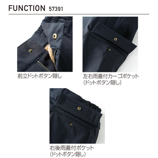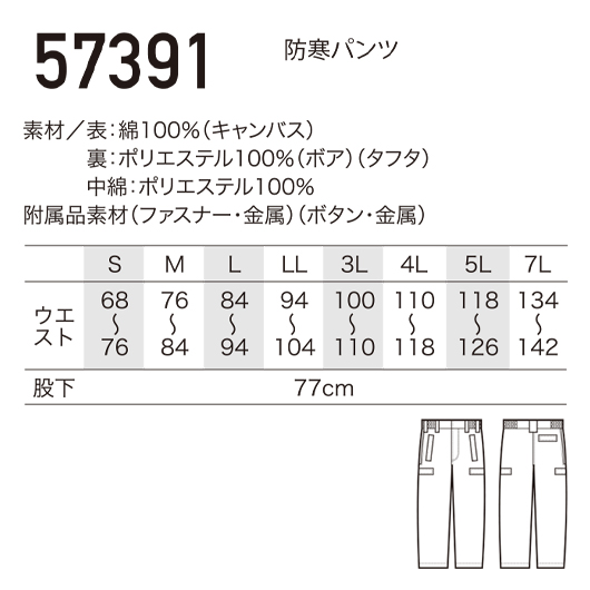 【クロダルマ】57391 防寒パンツ【撥水】【防寒】【綿100%】【裏ボア】【高耐久】