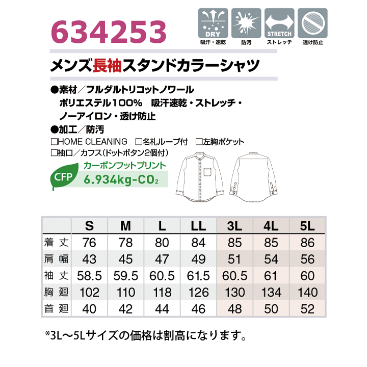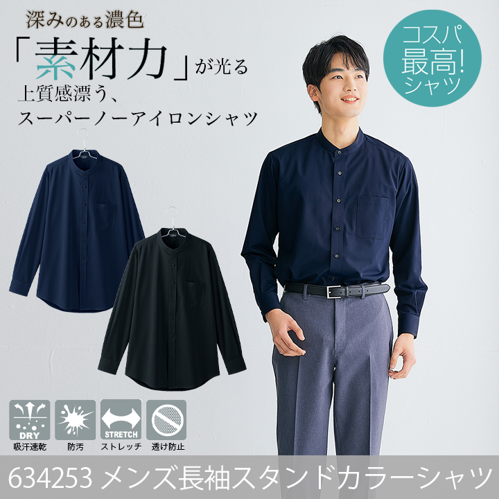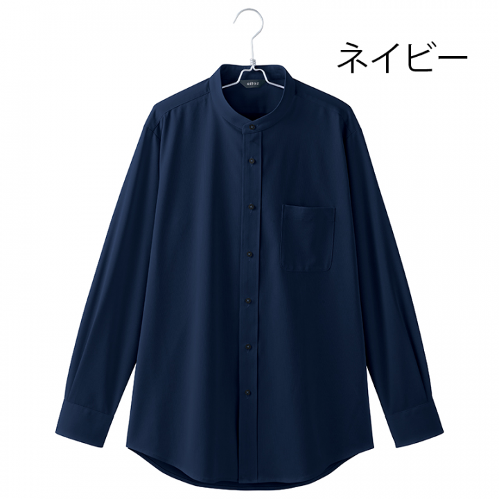 【AITOZ】634253 メンズ長袖スタンドカラーシャツ【ノーアイロン】【ストレッチ】【吸汗速乾】【防汚】【透け防止】