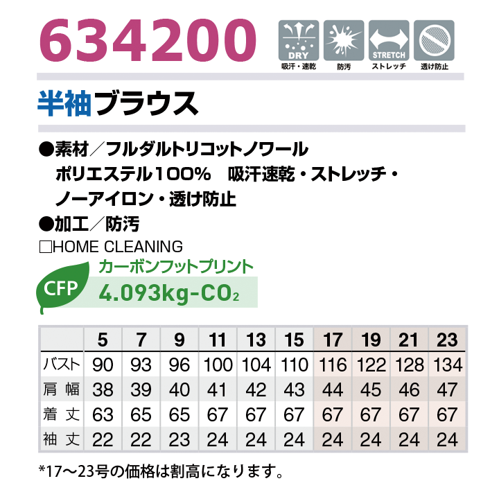 【AITOZ】634200 半袖ブラウス【レディース】【ノーアイロン】【ストレッチ】【吸汗速乾】【防汚】【透け防止】