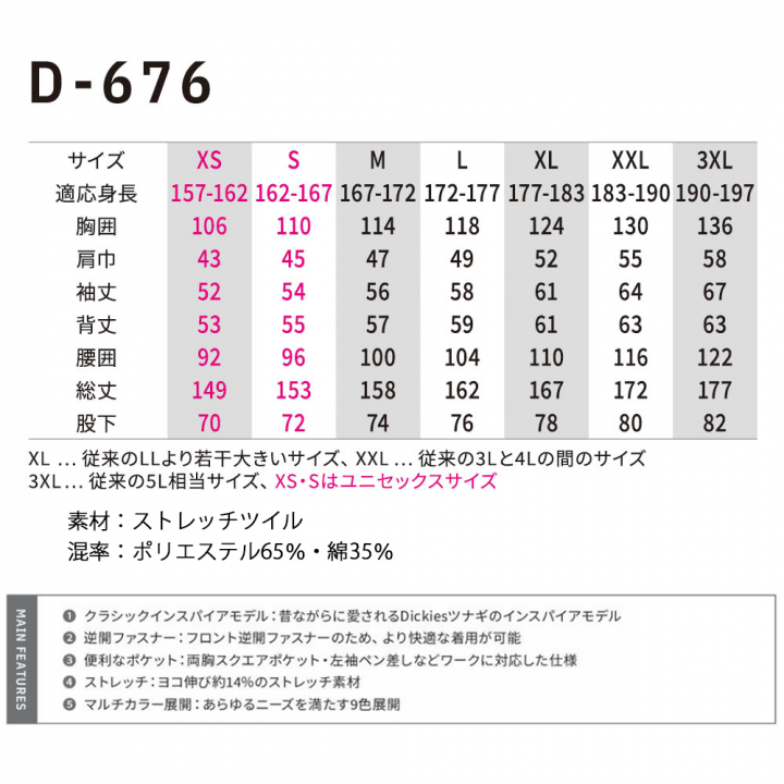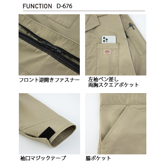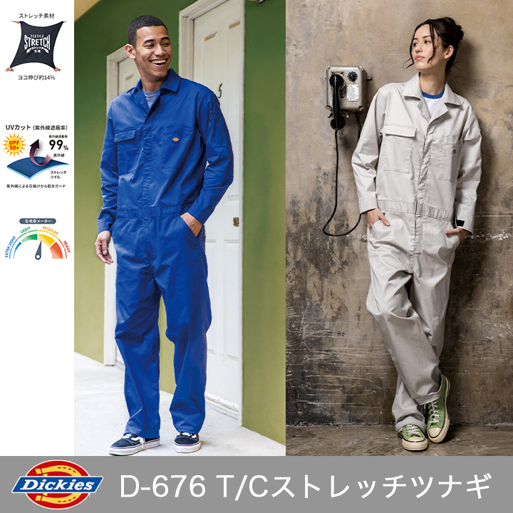 【Dickies】D-676 T/Cストレッチツナギ【男女兼用】 【吸汗速乾】【ストレッチ】【UVカット】