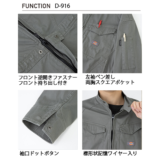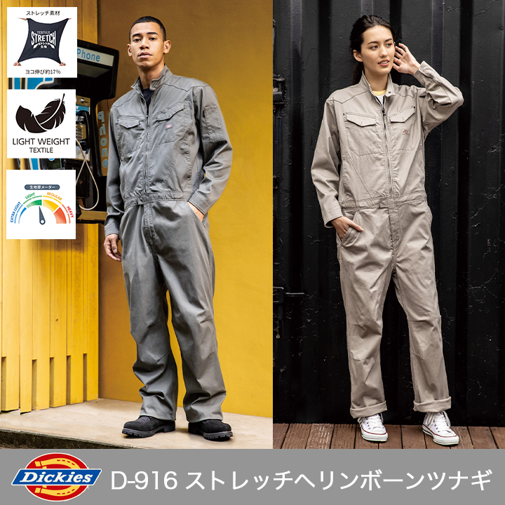 【Dickies】D-916 ストレッチヘリンボーンツナギ【男女兼用】 【ストレッチ】【軽量】