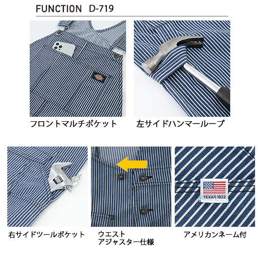 【Dickies】D-719 ストレッチヒッコリーオーバーオール【男女兼用】【ストレッチ】