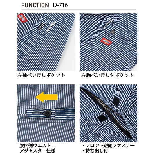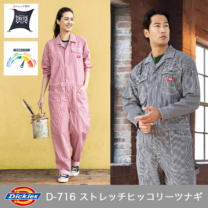 【Dickies】D-716 ストレッチヒッコリーツナギ【男女兼用】【ストレッチ】【反射】