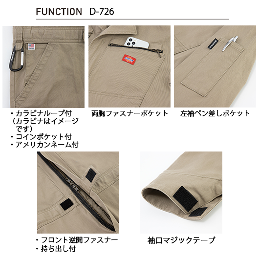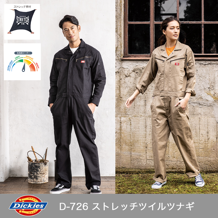 【Dickies】D-726 ストレッチツイルツナギ【男女兼用】【ストレッチ】【反射】