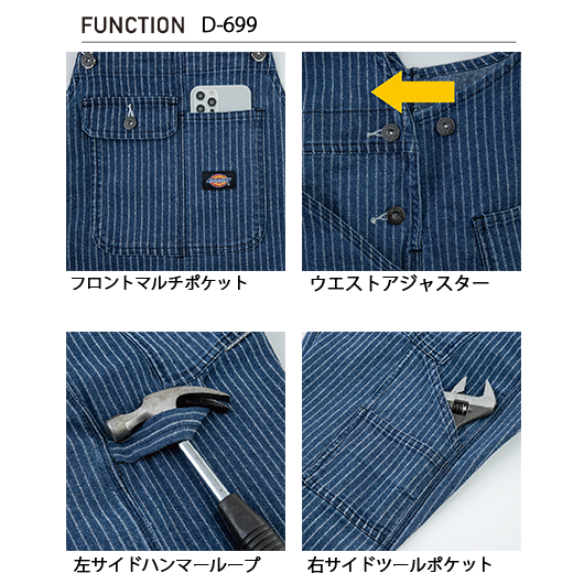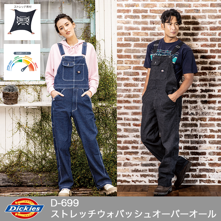 【Dickies】D-699 ストレッチウォバッシュ オーバーオール【男女兼用】【ストレッチ】【反射】