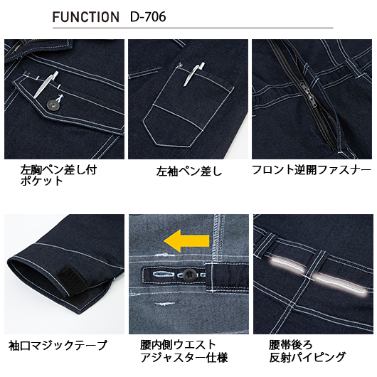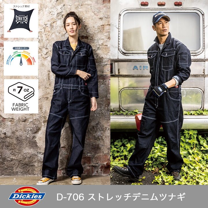 【Dickies】D-706 ストレッチデニム ツナギ【男女兼用】【ストレッチ】【反射】