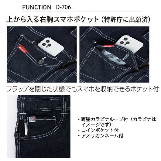 しっかりとした見た目だが、動きを妨げないヨコ伸び伸長率25%以上のアメイジングストレッチ素材を採用し快適な着心地。作業をしていてもカッコよくキマるデニムタイプ。