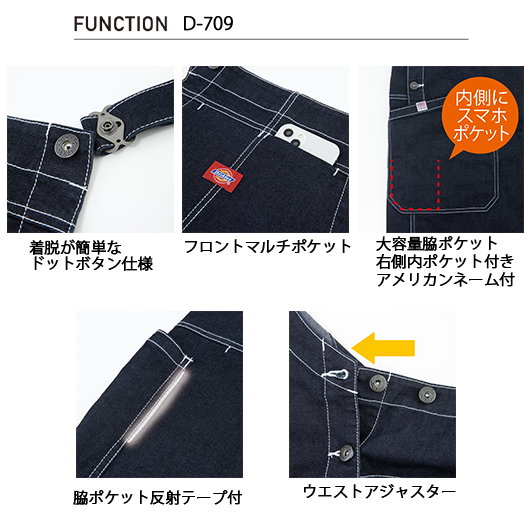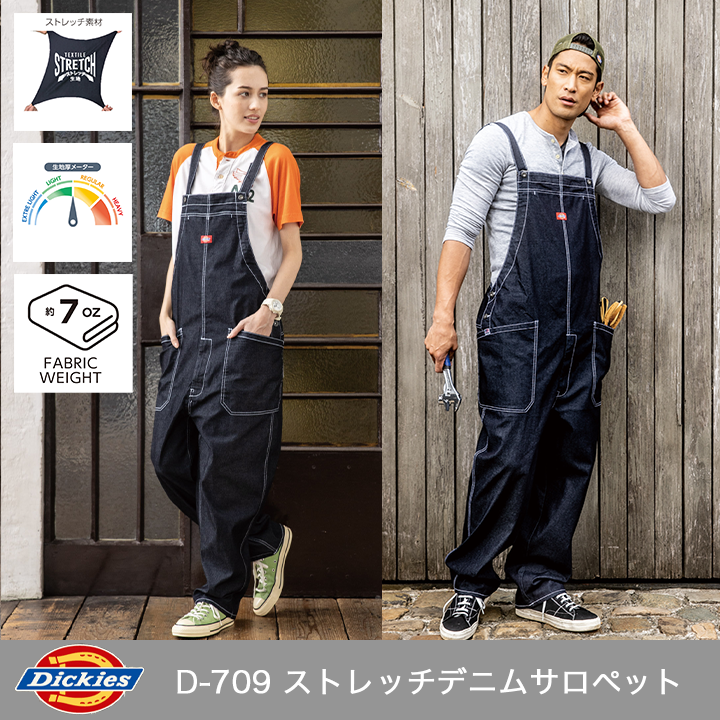 【Dickies】D-709 ストレッチデニム サロペット【男女兼用】【ストレッチ】【反射】