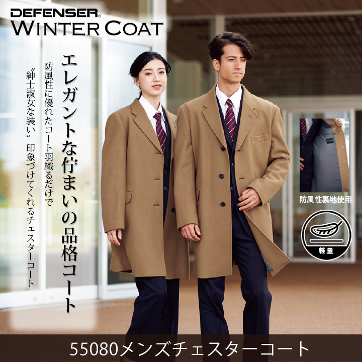 防風性に優れたコートで、羽織るだけで紳士淑女の装いを印象付けてくれるチェスターコート。高級感あふれるシルエットと心地よい着用感がこだわりの一着。