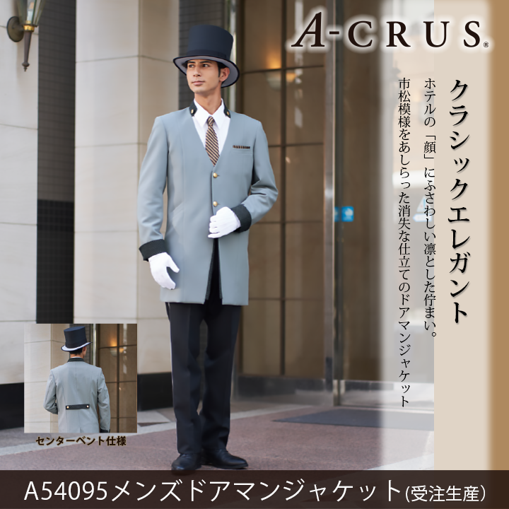 袖口・衿にあしらった落ち着いた市松模様が上質な仕立てのドアマンジャケットです。