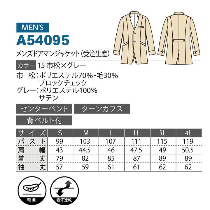 【DALTON】A54095メンズドアマンジャケット(受注生産)【軽量】【吸汗速乾】
