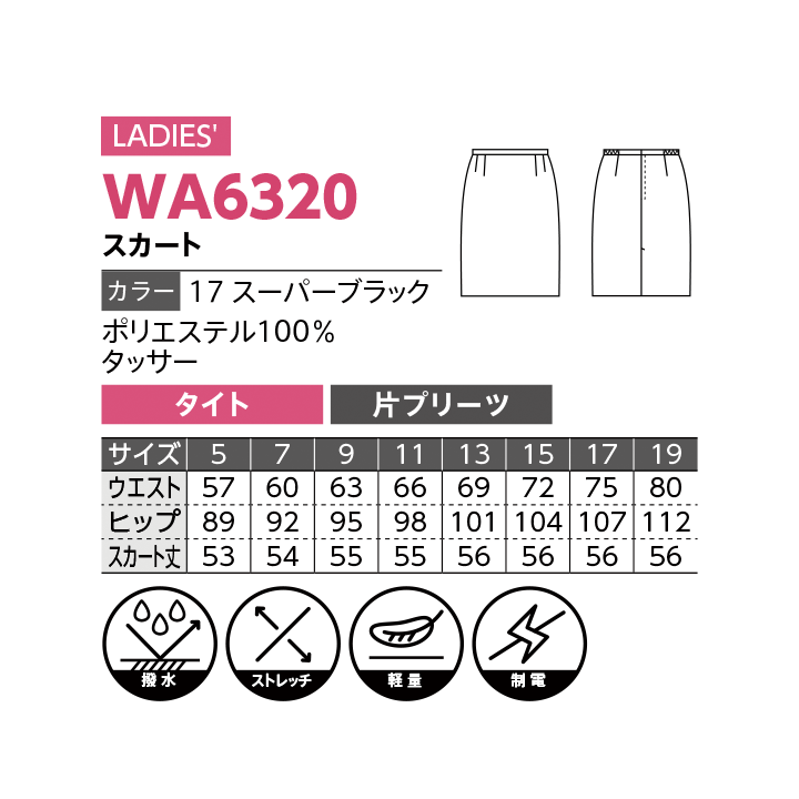 【DALTON】W6320スカート【撥水】【ストレッチ】【軽量】【制電】