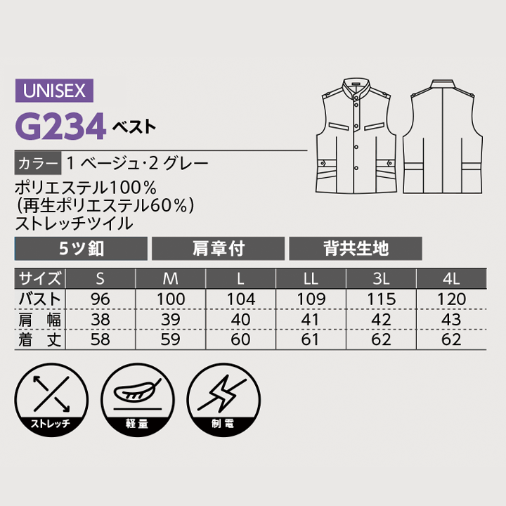 【DALTON】G234ベスト(ユニセックス)【ストレッチ】【ウォッシャブル】【軽量】【制電】