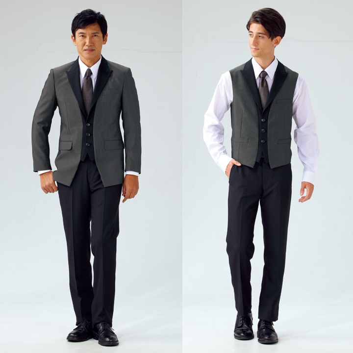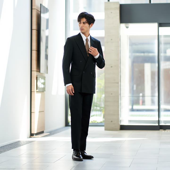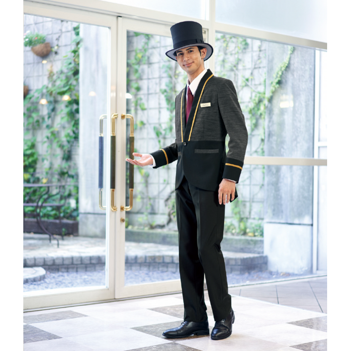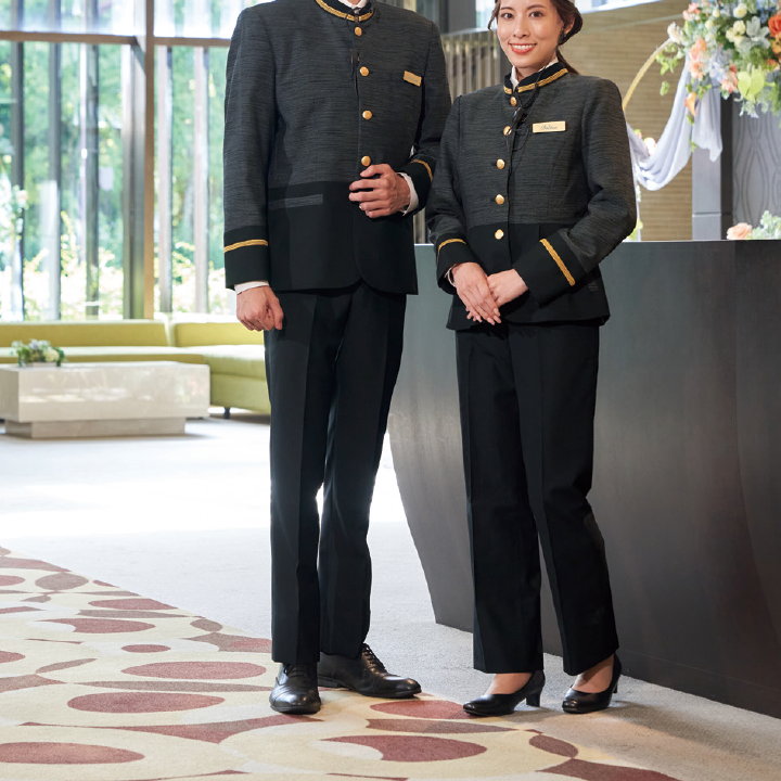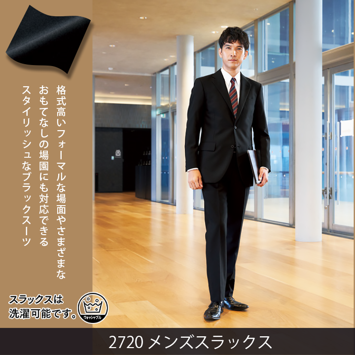 格式高いフォーマルな場面や様々なおもてなし場面にも対応できるスタイリッシュなブラックスーツのスラックス