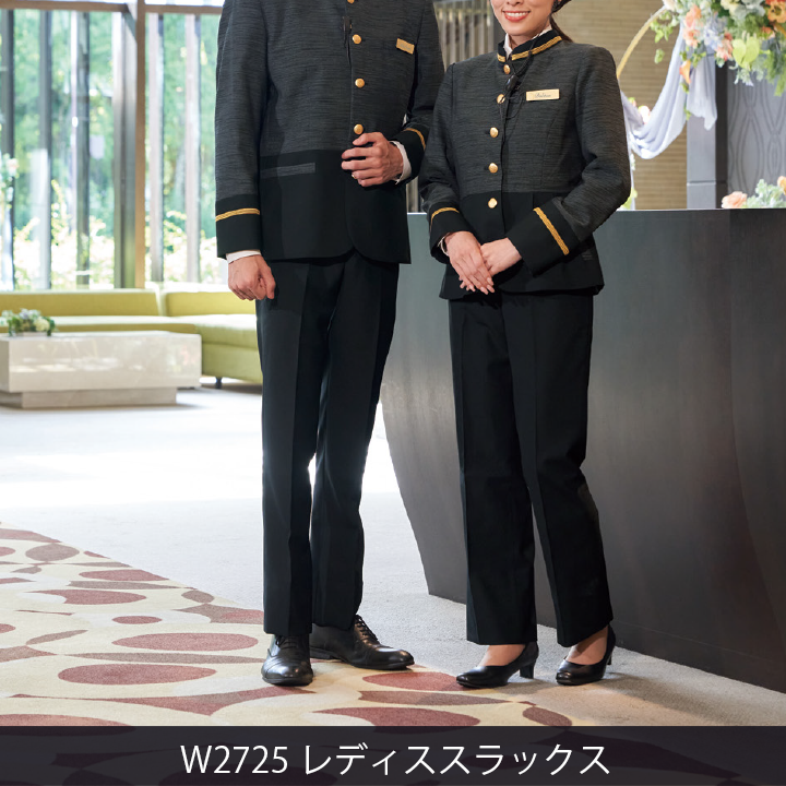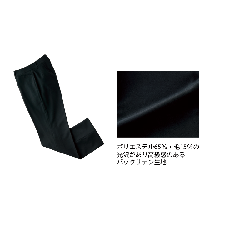 格式高いフォーマルな場面や様々なおもてなし場面にも対応できるスタイリッシュなブラックスーツのスラックス。