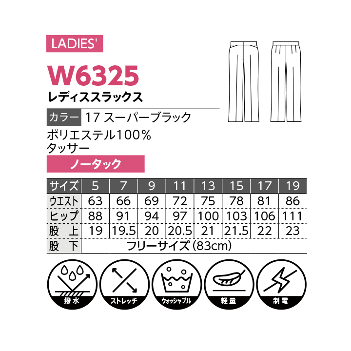 【DALTON】W6325レディススラックス【撥水】【ウォッシャブル】【ストレッチ】【軽量】【制電】
