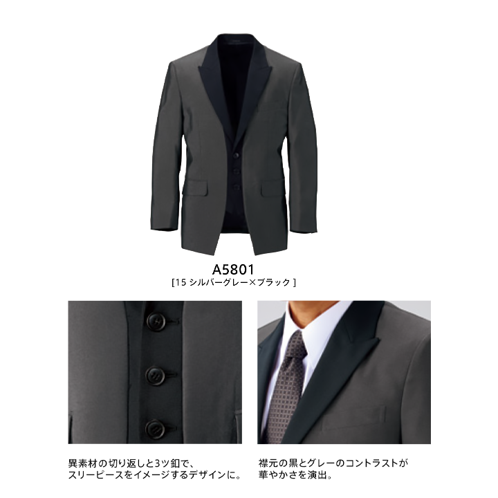黒×シルバーグレーのフェイクレイヤードがスリーピース調の風格を醸し出すジャケット