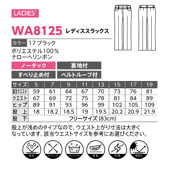【DALTON】WA8125レディススラックス【撥水】【ストレッチ】【ウォッシャブル】【軽量】【制電】【高耐光】