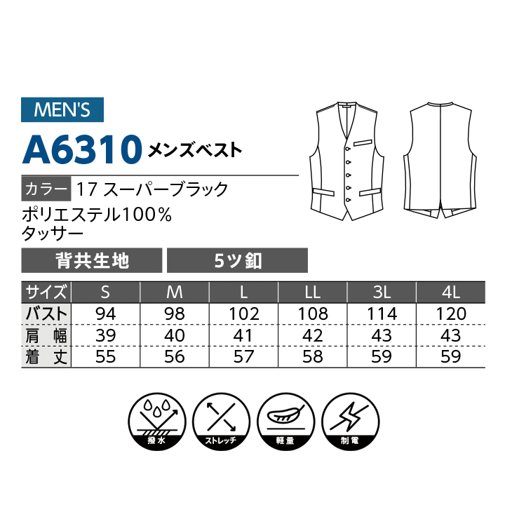 【DALTON】A6310メンズベスト【撥水】【ストレッチ】【軽量】【制電】