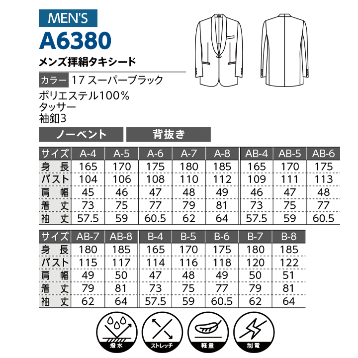 【DALTON】A6380メンズ拝絹タキシード【撥水】【ストレッチ】【軽量】【制電】