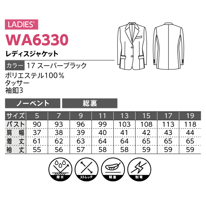 【DALTON】WA6330レディスジャケット【撥水】【ストレッチ】【軽量】【制電】