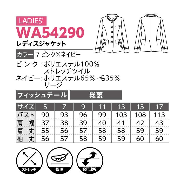 【DALTON】WA54290レディスジャケット【ストレッチ】【軽量】【吸汗速乾】