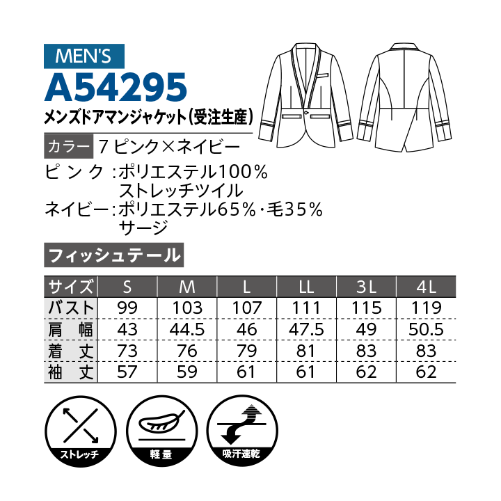 【DALTON】A54295メンズジャケット(受注生産)【ストレッチ】【軽量】【吸汗速乾】
