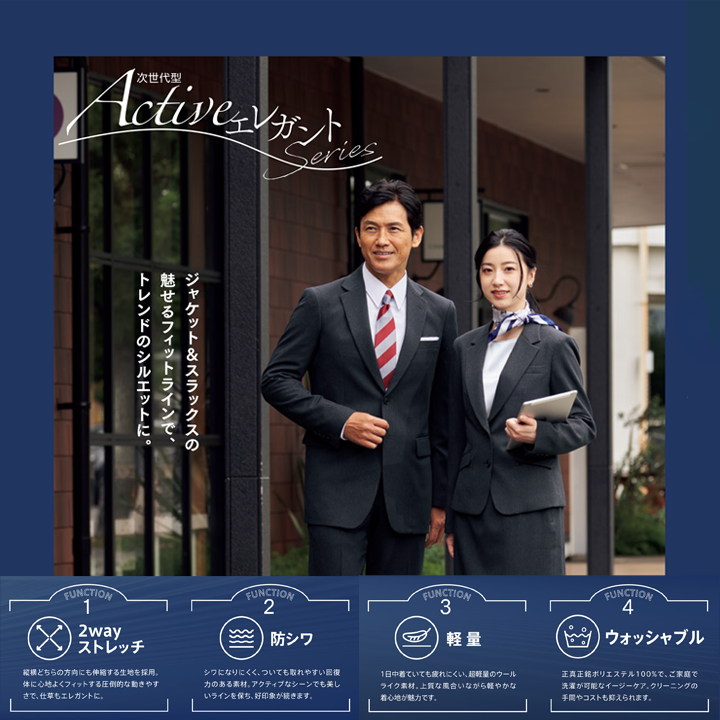 「ストレッチ・ウォッシャブル・軽量・防シワ」もスゴ技機能を搭載。シャドーストライプ柄が艶やかで、エレガントな雰囲気を演出してくれるこれからの時代にふさわしい素材を使用しております。