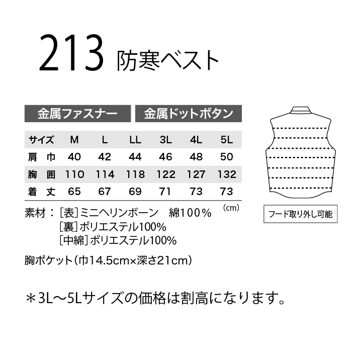 【XEBEC】213防寒ベスト 【綿100%】