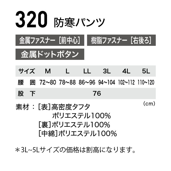 【XEBEC】320防寒パンツ 【撥水】【保温性】