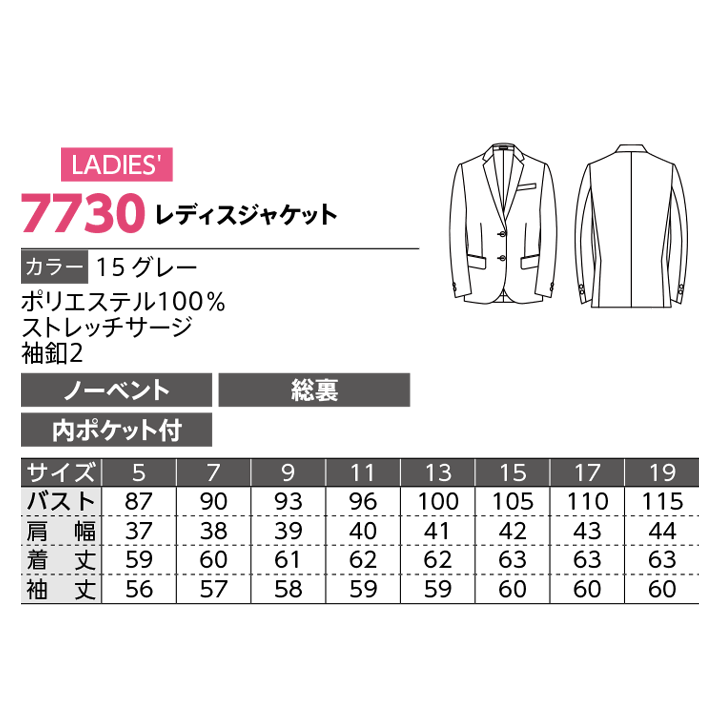 【DALTON】7730レディスジャケット【ストレッチ】【ウォッシャブル】【制電】【高耐光】